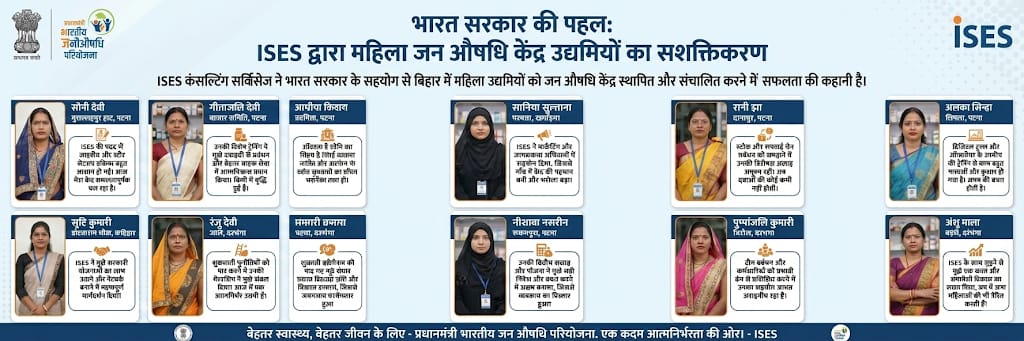 ISES ने अब तक 10 से अधिक जन औषधि केंद्र संचालकों को स्थापना (Establishment) और संचालन (Operations) हेतु एंड-टू-एंड कंसल्टिंग सेवाएं प्रदान की हैं।